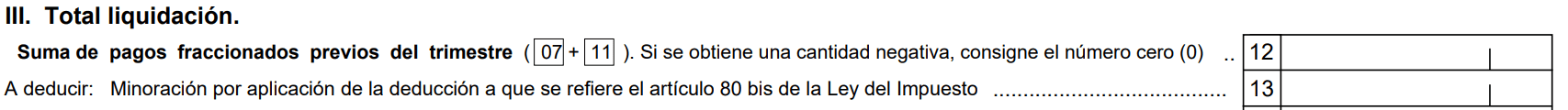 En el Modelo 130, la casilla 13 es bastante significativa ya que permite aplicar una minoración por la aplicación de deducciones cuando el rendimiento neto de la actividad económica del ejercicio anterior resultó inferior a 12.000€.